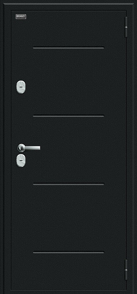 Стальной дверной блок энергосберегающей конструкции с двойным терморазрывом (термомостом) из натуральной пробки и четырехконтурным уплотнением. Поставляется с правым и левым открыванием наружу.